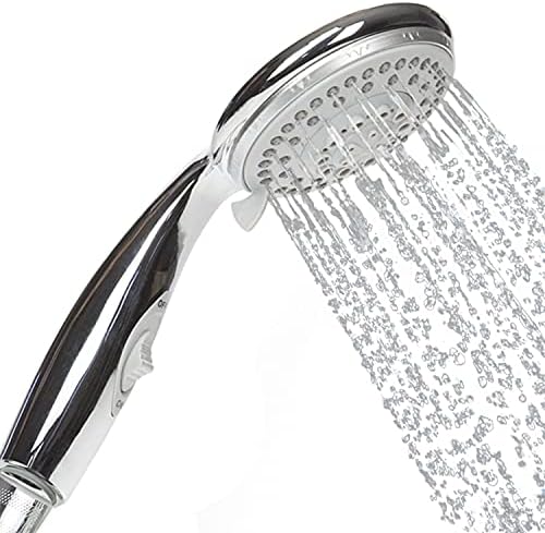 100 solid metal hand held shower head set with 2.5 gpm high pressure spray. For superior freedom of movement, we recommend choosing a handheld showerhead with a reasonably long hose. The package includes the shower hose along with the handheld shower and an overhead bracket. Handheld shower heads are attached to your shower with a long hose and can easily be removed to direct the spray of water wherever you want it. Most users find a hose length of about 60 inches to be more than adequate for personal use.
